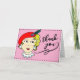 Sweet and simple thank you card. Pink with a vintage girl drawing. The front says Thank you!