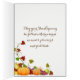 Carte de voeux avec une jolie feuille d'automne et un imprimé de récolte citrouille avec un salut Thanksgiving à l'intérieur. Customisez cette carte ou achetez tel quel.
