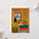 Envoyez vos voeux de vacances avec cette carte d'action de grâces rustique du sud-ouest. Un chat en tuxedo noir et blanc est assis sur le rebord d'une fenêtre de style Père Noël Fe avec des rideaux en dentelle. Une abondance de courges et de citrouilles s'assoient sur une table peinte en bleu patiné rustique, et un creux rempli de pommes et d'un pot de tournesol est assis devant la table. Le sentiment "Thanksgiving est un moment pour la famille, les amis, la gratitude et l'amour" est le message sur le devant, et sur le dos notre chat sassy ajoute "ET la TURQUIE !"