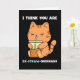 Un adorable chaton orange sirote un thé aux perles de boba à travers une paille bleue sur un fond noir et porte le message le plus doux qui dit, Je pense que vous êtes ex-tra-or-di-né; un jeu de mots de mots pour extraordinaire. Le texte à l'intérieur dit, Et je ne plaisante pas ! Vous pouvez personnaliser le message à l'intérieur en l'ajoutant, en le modifiant ou en le supprimant pour écrire votre propre message pour un message personnalisé. Dites à quelqu'un qui aime les chatons kawaii mignons et le thé aux perles de boba exactement ce que vous ressentez pour son anniversaire ou à la Saint-Valentin.