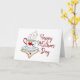 Carte de la Fête des Mères mignonne avec une tasse ornée d'un coeur avec des boucles de vapeur s'élevant au-dessus. A côté, le message "Bonne fête des mères" est écrit dans un script cosy. Vide à l'intérieur.