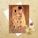 A blank greeting card featuring Gustav Klimt’s iconic painting The Kiss (c. 1907). Klimt (1862-1918), an Austrian Symbolist painter, created this masterpiece during his Golden Period, incorporating gold leaf, silver, and platinum. The image depicts a man and woman embracing, wrapped in vibrant, patterned robes.