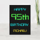Cette carte de voeux d'anniversaire simple et amusante comporte un message comme "HAPPY 95th BANTHDAY, MICHAEL!". Il présente également un aspect amusant inspiré de l'informatique numérique. Le nom à l'avant et le message à l'intérieur peuvent être personnalisés. Il pourrait être envoyé ou donné à quelqu'un qui fête son quatre-vingt-quinzième anniversaire, et qui peut-être travaille comme programmeur informatique, développeur de logiciels, administrateur de base de données, administrateur de réseau, ingénieur électronique, ou qui aime autrement utiliser des ordinateurs. [~Z0000100]