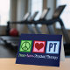 Cette carte de kinésithérapeute mignonne comporte un signe de paix, un cœur et les lettres PT pour physiothérapie. Jolies cartes de vacances ou de Noël pour un cabinet ou une entreprise de physiothérapie.