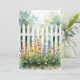 A white picket fence with flowers adorn this card. Text on the back can be changed. Image is AI-generated by IveyCottage.