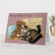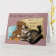 Célébrez la fête des mères avec un hommage chaleureux et sincère d'un félin dévoué. Cette charmante illustration présente un chat tigré détendu se prélassant à côté d'un ours en peluche et de coussins doux, avec le message affectueux « Meilleure maman de chat du monde ! » au-dessus et un doux rappel que la maison est là où est le chat. Parfait pour les mamans de chats qui savent que les ronronnements, les coups de tête et les moments de calme partagés font d'une maison un véritable foyer. Un design cosy et sentimental du chat à celle qui l'aime le plus.
