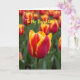 This design shows a single tulip-like flower filling the foreground, its petals blending deep crimson with bright yellow edges like a gentle flame. Fine veins and soft textures run through the petals, drawing your eye in close the way two friends might lean toward each other in a quiet moment. Behind it, a wide field of similar blooms stretches back in a soft blur, creating a cozy sense of closeness and togetherness 🌷. The light is diffused and warm, smoothing the colors and giving the scene a tender, affectionate look. Near the upper middle, bright yellow text reads “To My Daughter,” set clearly against the softer background tones. The lettering sits above the main bloom without covering it, keeping the flower as the main focus while still feeling like a caring note. The background fades into green stems and scattered red-and-gold blossoms, with the closest flower sharply detailed in front 🐰.