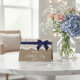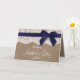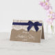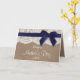 Toile de jute rustique, dentelle blanche et ruban bleu marine avec noeud Bonne carte de fête des mères.