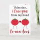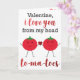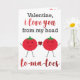 Cette carte de la Saint-Valentin est mignonne et drôle avec la phrase "Je t'aime de la tête aux tomates" utilisant des tomates comme le garçon et la fille amoureux. Écrivez votre propre message spécial à l'intérieur de la carte pour votre Valentin.
