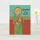 Souhaitez un Joe, Joseph ou Joséphine "A Happy Name Day" avec une carte de Saints_Aabondance! + Dans ce détail d'une empreinte dévotionnelle belge du 19ème siècle, un St. Joseph aux cheveux gris mûrs se dresse devant un mur rouge suspendu à une garniture jaune doré. La tapisserie est tapissée de croix à armes égales enfermées dans des carrés rotatifs. Son accrochage défie l'explication logique, car l'arrière - plan est constitué d'un ciel bleu-aqua infiniment profond, obscurci d'étoiles. + Saint-Joseph est richement garni de couleurs fortes. Sa robe est rouge, son manteau, vert avec une doublure d'aqua foncé et des bordures jaunes dorées. Il tient un spray de lys blancs symbolisant la pureté dans sa main droite et une règle de menuisier brun en L qui témoigne de sa profession dans sa gauche. Sous les pieds sablés de Saint-Joseph sur l’image pleine longueur qui apparaît, par exemple, sur nos cartes de voeux et nos affiches dans cette COLLECTION, il y a d’autres attributs - un petit dragon, une couronne, un rouleau et un globe portant les noms des continents peuplés - qui parlent de son rôle de protecteur de l’Église. + Cette lithographie chromo- ou couleur a été publiée à l'origine pour promulguer "Prière à saint Joseph" du Pape Léon XIII de 1889. + Fête principale de saint Joseph : 19 mars ; Fête de saint Joseph le travailleur : 1 mai + Crédit d'image (VVP 09) : Détail d'un chromolithographe antique de saint Joseph, protecteur de l'Église, Priez pour nous [H. Jozef, beschermer der H. Kerk, B.V.O.] initialement publié par K[arel] v[an] d[er] Vyvere-Petyt, Bruges, Belgique, c. 1890, de la collection privée de l’éphémère religieuse du designer.