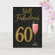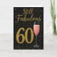 Célébrez ce moment important avec beaucoup de style ! Cette carte d'anniversaire glamour pour 60 ans présente une écriture dorée luxueuse qui dit « Toujours fabuleuse » au-dessus d'un « 60 » scintillant et gras, le tout sur un fond noir élégant. Des points de confettis rose pâle et dorés ajoutent une touche festive, et un grand verre de bulles rose complète l'ambiance de célébration. Parfait pour une mère, une sœur, une meilleure amie, une collègue ou toute femme fabuleuse qui fête ses 60 ans.