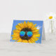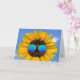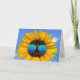 Lunettes de soleil rétro sur tournesols jaunes avec un ciel d'été bleu pour l'anniversaire.