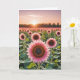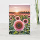 Des tournesols roses dans un champ de campagne avec des rayons de soleil brillants pour la sympathie. Le texte peut être modifié.