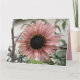 Cette carte get well soon présente une belle photo d'un tournesol rose pâle. Le tournesol est naturellement rose et les pétales ont un anneau extérieur rose pâle et un anneau intérieur rose plus foncé. Le milieu où les graines sont noires. Cette photo a été prise dans un jardin.