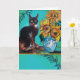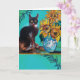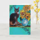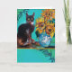 Carte Tournesols avec chat noir en bleu turquoise