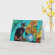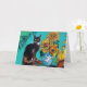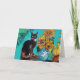 CARTE TOURNESOLS AVEC CHAT NOIR EN BLEU TURQUOISE