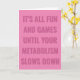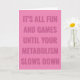 Tout est amusant et jeux jusqu’à ce que votre métabolisme ralentisse la carte d’anniversaire drôle. Modifiez les couleurs de la police et de l'arrière - plan et personnalisez le message intérieur.
