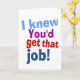 Dites quelque chose d'unique et d'original avec cette carte de vœux de félicitations amusante. Cela ajoutera énormément à la joie que le destinataire ressent concernant son nouveau travail. Votre expression humoristique aidera à commémorer le début de son emploi.