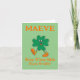 Carte personnalisable adorable de la Saint-Patrick avec un trèfle ambulant sur la couverture et un vœu de garder les yeux irlandais souriants. Message à l'intérieur "Joyeuse Saint-Patrick à toi". Peut être personnalisée pour un effet personnel.