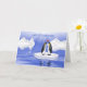 Salutation d'anniversaire d'amusement avec le flottement de deux Penquins de la glace entouré par des icebergs dans l'artic. Graphique. Disponible dedans