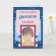 Carte de voeux d'anniversaire pour votre fille très spéciale. Ajoutez un nom, une photo et votre message. Conçu avec un arrière - plan moucheté. Bleu, clair et rose foncé. J'espère que tous vos voeux se réaliseront.