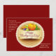 Envoyez vos vœux pour les fêtes de Thanksgiving avec ce motif en panier tressé. Il comporte un médaillon central à motif de panier tressé avec des légumes de saison et un message « Joyeux Thanksgiving ».