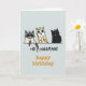 Envoyez des voeux à quelqu'un de très spécial pour leur anniversaire avec cette drôle de carte de chat. Trois chats avec l'expression "hey, hooman" et "heureux anniversaire" sur le bleu clair apportera le sourire à tous. L'illustration de la mini-taille de trois chats est également imprimée sur le dos. L'expression de cette carte peut être personnalisée avec vos propres mots.
