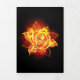 Blooming rose from fire and flame on black background.