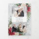 Ce design classique et traditionnel comprend deux modèles photo avec élément blanc central pour votre personnalisation sur un arrière - plan de poinsettias aquarelle, roses blanches et pin sur un arrière - plan gris brumeux. Les panneaux comportent trois modèles photo supplémentaires ainsi que des champs de texte modifiables sur un arrière - plan d'aquarelle gris complémentaire.