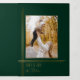 Faites une déclaration de vacances sobre mais impactée avec ce style art déco moderne et élégant avec des lignes chic en or mince dégradé entourant un seul modèle photo d'aspect portrait avec un chasseur profond arrière - plan vert et une police complémentaire. Les panneaux pliants comportent des champs de texte supplémentaires et des modèles photo avec des bordures de ligne d'or.