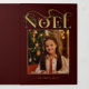 Elégant énoncé de conception de carte de voeux de vacances avec un texte "Noel" personnalisé unique en texture d'or imitation martelé embellie avec des plantes de vacances avec modèle photo bordé d'or et champs de texte modifiable sur arrière - plan rouge profond.