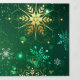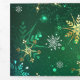 Arrière - plan de Noël vert avec des flocons de neige en or et bijoux verts. Des flocons dorés. Noël.