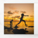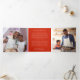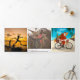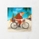 Père Noël à vélo avec planche de surf et cadeaux sur la couverture extérieure avec 4 panneaux photo avec message personnalisé et couleur arrière - plan au centre. Image originale de Becky Nimoy