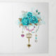 Clé d'or antique aux roses turquoise tendance décorée de feuilles d'or blanc et de perles rose et bleu. Couleur tendance. Rose turquoise. Blanc doré. Tiffany bleu.