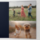 Une carte de Noël moderne à trois volets avec un monogramme de famille unique, plusieurs ouvertures de photos de paysage et portrait avec une couronne de fil d'or et un swag de vacances asymétrique avec branches de pin, cyprès et baies sur un arrière - plan bleu marine foncé. Un excellent moyen de présenter des photos de famille et un message de vacances personnalisé spécial.