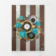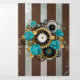 Carte Trois Volets Steampunk Clock and Turquoise Roses on Striped