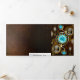 Turquoise lenses with antique watch with brass gears and golden keys on rusty, brown background. Steampunk style.