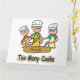 Trop de cuisiniers montre trois cuisiniers avec des cuillères à la main se disputant sur une casserole. Illustration du vieil adage avec le libellé "trop de cuisiniers" ci-dessous. Un dessin humoristique de cuisine.