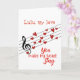 La carte de la Saint-Valentin "You Make My Heart Sing" fera apparaître un sourire heureux sur le visage de tous ceux à qui vous l'enverrez. Ce design présente des cœurs dansant sur la musique et est personnalisable en cliquant simplement sur le bouton modifier ou personnaliser. Changez le sentiment en haut de la face avant de la carte et à l'intérieur de la carte. Vous pouvez même l'envoyer à votre chien ou chat.