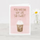 Une carte de vœux douce pour la Saint-Valentin avec une illustration de mocha glacé et un message humoristique.