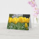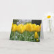 Belle carte de voeux à imprimé fleuri tulipes à ressort jaune. Videz à l'intérieur pour votre propre message.