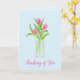 Tulipes dans l'Eau Floral Aquarelle Peinte à la Main Carte de vœux « Je pense à toi » - le message peut être changé en « Merci » ou « Joyeux Anniversaire ».