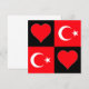 Carte de voeux mignonne de Turquie carré pour les fiers Turcs. Avec un motif à damiers unique fait de coeurs rouges et le drapeau national turc. Travaille comme une invitation pour les fêtes patriotiques de la Turquie, tendre la main à des amis et à la famille en Turquie, ou pour des projets d'artisanat et d'art patriotique !