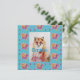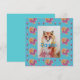Carte à plat Turquoise Red Fox Animal Roses Rose, avec un nom entièrement personnalisable. Un design floral aquarelle glorieux. Conçu à partir de mes aquarelles originales, que j'ai peint dans mon jardin fleuri.