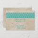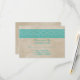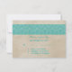Simple et élégant Rustic Lace Wedding RSVP Card avec un aspect papier texturé vintage arrière - plan et une bordure motif en dentelle douce et dainty en turquoise. Facile à customiser, il suffit d'ajouter les détails de votre mariage. Cliquez sur "Customiser" pour trouver d'autres options de personnalisation.