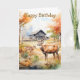 Two deer in mountain landscape with trees and flowers. Suitable for a birthday for anyone