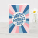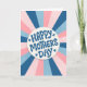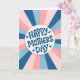 Offrez une carte de fête des mères amusante et unique avec ce design de lettrage rétro à explosion de soleil bleu et rose.