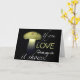 Cette conception présente ma photographie en gros plan d'un champignon solaire en céramique brillant avec des gouttes d'eau par une soirée sombre avec un message inspirant "Si vous AIMEZ ce que vous faites, cela se voit !". L'intérieur propose une ligne de texte de modèle que vous pouvez facilement modifier ou conserver pour une occasion spéciale. Vous pouvez également supprimer le message de l'intérieur pour laisser de la place à une note manuscrite. Vous pouvez également mettre la carte postale dans un cadre avec un passe-partout comme idée de cadeau. Conception & Photographie ©Patricia AZ Phillips
