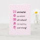 C'est une carte rose magnifique avec des lettres grasses pour célébrer une femme fabuleuse. Sur le devant de la carte figure le texte "Chaleureuse, Ouverte d'esprit, Très talentueuse, Épatante, Jamais tort !"; à l'intérieur, il y a une dispersion de cœurs blancs sur fond rose. Le message à l'intérieur est personnalisable, ou vous pouvez utiliser le texte par défaut et "Tout simplement la meilleure !" imprimé en écriture rose foncé. Cela peut être une carte de la Saint-Valentin, ou pour toute occasion romantique où vous souhaitez montrer votre appréciation et votre amour.