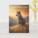 Un loup dans une forêt avec un joli coucher de soleil. Adapté pour une carte Fête des pères
